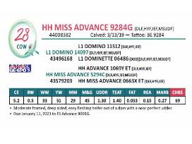 Moderate framed, deep sided, easy fleshing heifer out of a dam with a near perfect udder.