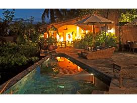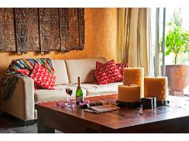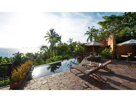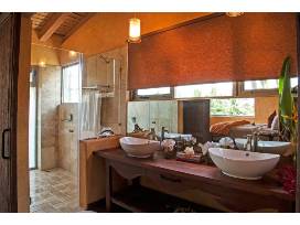 This Villa has 4 Suites & 5 Bathrooms and approximately 5,000 Sq Ft. There is an infinity pool and access to a private beach. It's a short 30 minute drive from the airport. Tennis courts & golf courses are available.