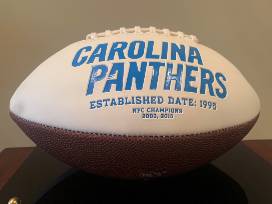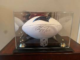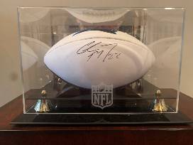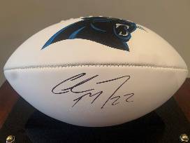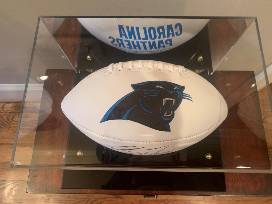 Christian McCaffrey hand-signed football with acrylic case. Go Panthers!