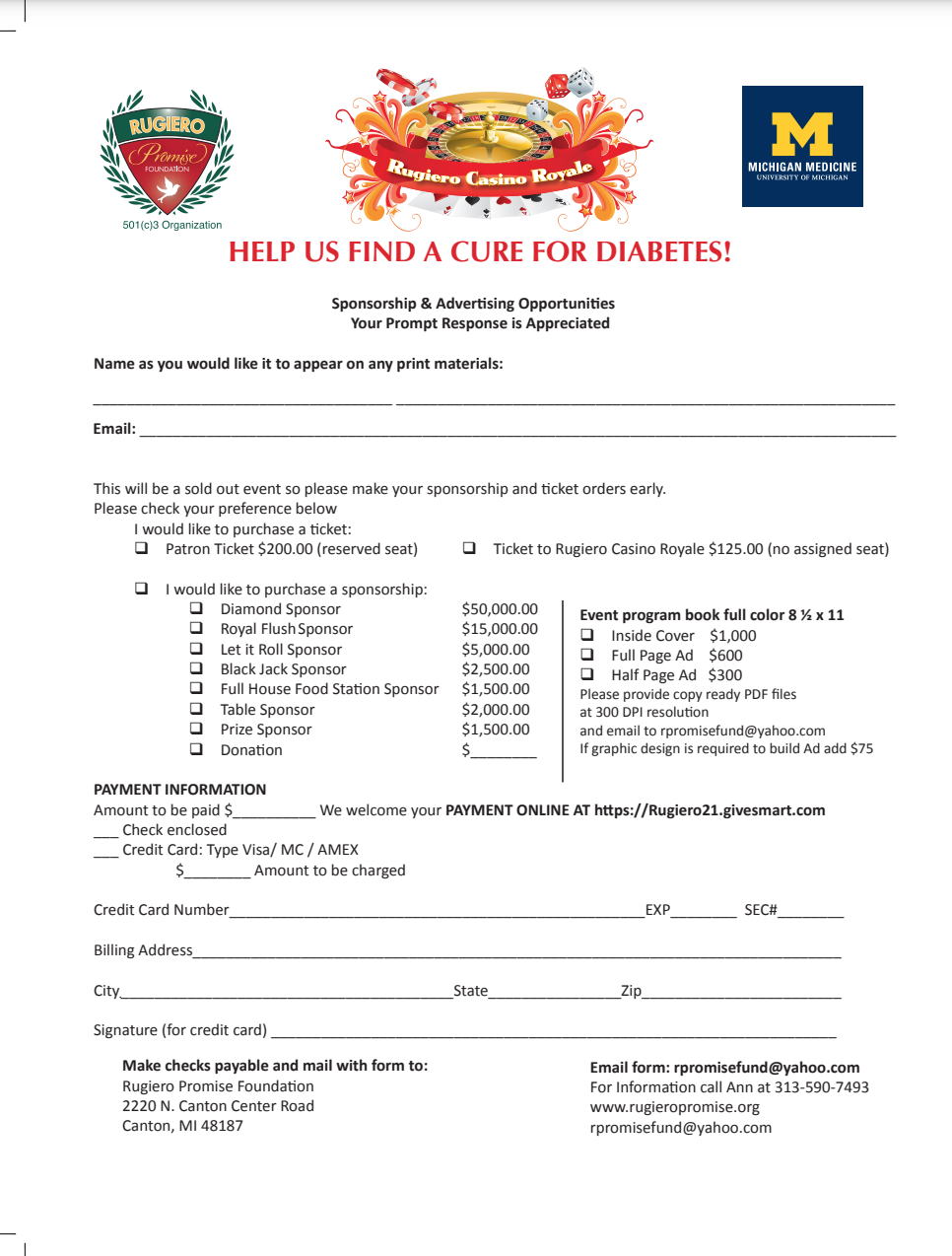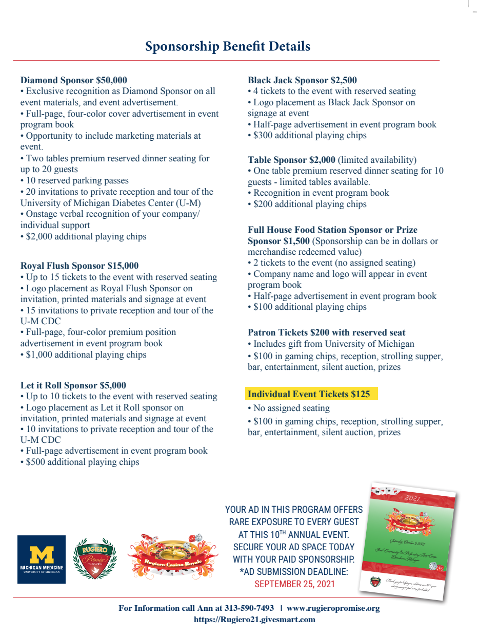 We are looking forward to our 10th Annual Rugiero Casino Royale event! Thank you so much for your support!