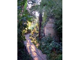 At the golden hour, meander in the Botanical Garden featuring 10,000 plants and 2,000 cultivars, Gladding McBean Statuary, fish ponds, unusual follies, 6 'retreats', kitchen gardens, and a treehouse.
