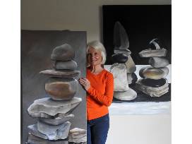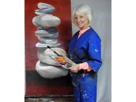 Art has always been a part of her life. She participated in numerous group and one person shows including the galleries at the Handsome Cab, Landiswoods Juried Art Show and recently was a featured artist at Kaletta's. She is most know for her large scale paintings of stacked rocks called cairns.