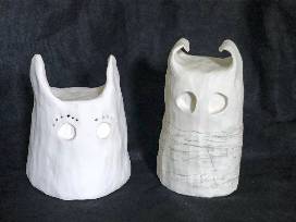 The Watchers are from an exhibit I did called "Fun and Games" because most games have an audience. I am mainly a textile artist. However, the malleability and translucent quality of porcelain are what I wanted for the Watchers. My normal artists bio is below but I felt it needed a foreword for the Watcher series. Carol Reed is a natural dyer. She trained as a painter however a batik course in Italy introduced her to fiber arts. Although dyeing is an unusual medium choice it is applicable to many substrates including paper, skin, wood, etc. After many years using synthetic dyes, an interest in local resources, love of planting and the seasons led her to natural dyes. Currently she has her own dye garden and sources additional dyes through connections with local farmers and community members. Please see her web page www.carolreed.org for more information.