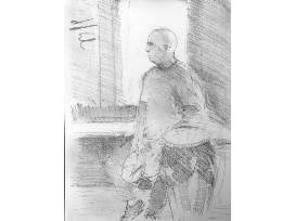 The study's name is Jose and this was drawn at First Friday Jazz last June. The performance was in the Appel Center's lobby. The winner of this auction piece will have the opportunity to come by Peter's studio and pick any one of his graphite drawings.