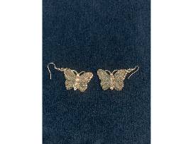 Trendy silver butterfly dangle earrings, with four rhinestones on the body of each butterfly