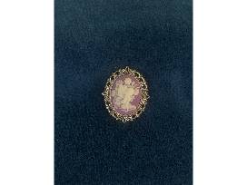 Elegant purple brooch with white fairy and floral detailing. Approximately 2 inches by 1 inch.