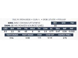 This female is a great representation of what Crosscut can do in your program. Her dam is a solid functional, square built female and that combined with the power and style of Crosscut makes this female a can miss opportunity. This female will out produce herself when her show career comes to a conclusion.