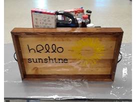 Handmade Breakfast tray with the VCS preschool student handprints on it