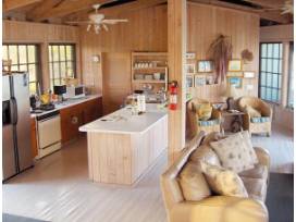 The gazebo is just forty feet off the clear blue waters of Cherokee Sound accommodates six (6) adults in it's three bedroom, three bathroom main house. The adjacent guide house has a bathroom, small kitchen and can sleep three (3) additional people.