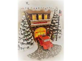 This is a Thomas Kinkade Light up Christmas Piece called "A First Responder's Christmas. It measures about 7 x 5 x 6 1/2 inches.