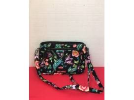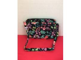 This purse is a quilted cotton cross-body bag in black and bright flowers.