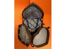 This Lapis lazuli, fresh-water-pearls-and-silver-bead necklace will be a beauty around your neck, not to mention the dark Lapis earrings that go so nicely with the necklace. It's a "gotta have" jewelry set. Along with the jewelry, is a heart-shaped beautiful and gorgeous three-tiered jewelry case to keep your treasures in.