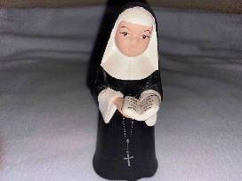 This statue shows a Nun with an angelic face with her prayer book and rosary.