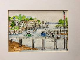 View of the Five Mile River, watercolor on paper, 5 x 7"