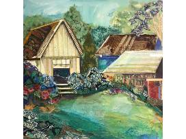 During the pandemic, I spent a lot of time in my garden escaping into nature. This painting "Yellow Barn"