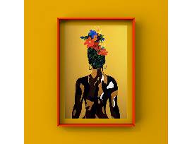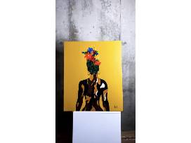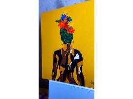 Original acrylic painting of a woman with a crown of flowers on her head. This painting was inspired by the true beauty, grace and capabilities of a woman when she is "In Bloom". Meaning the realization of the depth and power of her inner strength.