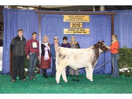 If you're looking to have some fun in the Shorthorn Plus division look no further. 2H is the reigning CJSA Plus Champion and for good reason. She checks a lot of boxes in my eyes; long bodied, goosey necked, roan, polled and to top it off, gets out on the move extremely well. Her dam is a cow that seems to pack the pounds on her calves and gives us one of our better calves year in and year out. Dont miss your chance to have a little fun with this one!