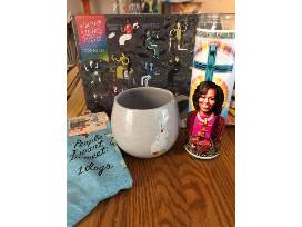 What better way to honor Ruth Bader Ginsburg than with an RBG pillow from Loch Ness MPLS, Women of Science puzzle from Neighborly, a "Don't Tell Me To Smile" screen print basset hound from Horray Forever, and a Michelle Obama prayer candle, dog socks, and dog mug from Steel Patel Press.