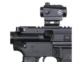 The Crimson Trace red-green dot optic sight is installed on four M&P15 Sport II optic-ready rifles to provide the consumer with an out-of-the box sight solution on their optics ready rifle. With both red or green dot reticles, the user can pick the color and the intensity of the dot that works best for them. The Crimson Trace CTS-103 allows for both quick and precise aiming of the M&P15 Sport II rifle.