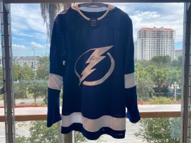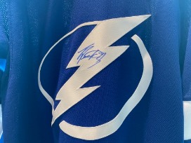 #91 Steven Stamkos signed Lightning replica jersey. Size 52.