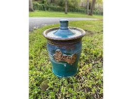 Handmade Ceramic Blue Treat Jar with Lid by Mark the Potter of Clarkesville, GA.