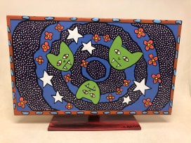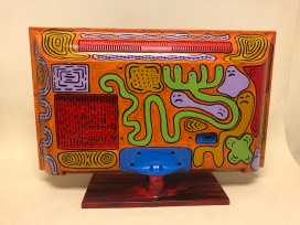1"Watching You," a unique hand-painted TV by Habersham artist Chris Allison. A perfect conversation piece!