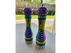 Handpainted art deco pair of salt and pepper mills by Carol Cooper.