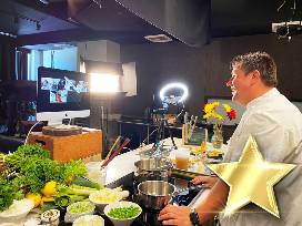 1Certificate offering a 90-MINUTE INTERACTIVE VIRTUAL CATERING ZOOM COOKING CLASS for up to 20 PARTICIPANTS. Includes a KIT with PREPARED PROVISIONS and RECIPES for TWO PEOPLE. Demo provided by Wolfgang Puck's VP of Culinary, Chef Eric Klein.