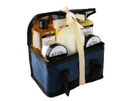Pamper him with this collection of seven SpaLife Sandalwood scented products and enjoy some "me" time. This gift set comes complete with shower gel, bubble bath, body lotion, body wash, bath crystals and a sisal sponge, nicely arranged in a paper suitcase."
