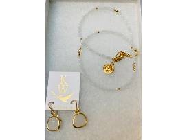 Katie Waltman Jewelry - Bracelet and Earrings - Petite Champagne Double Wrap Bracelet with Gold Accents - Small champagne crystal beads with gold accents and tassel ending, Labradorite bezel stone earrings on gold filled ear wires
