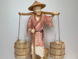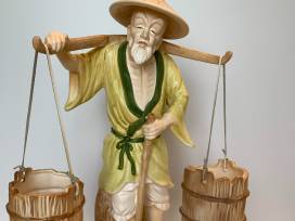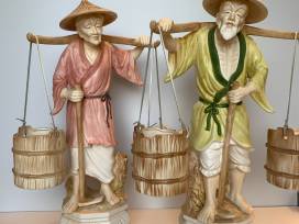Porcelain Japanese Old Man and Old Woman Water Carrier Figures - Vintage (possibly from the 1960's or earlier)