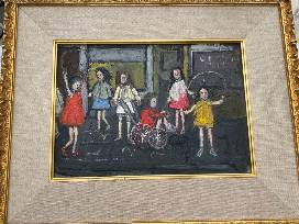 This vintage painting is looking for a new home. It's backing paper needs some TLC but the painting front is in good condition!