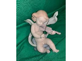 Original Lladro porcelain figurine of a cherub playing the violin, now retired and only available from limited collectors. Measures 8" tall.
