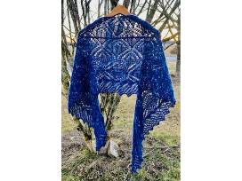 This vibrant blue shawl is handknitted with love. The "Ancient Arts" yarn is a mix of wool, mohair, and silk, hand-dyed in Canada. Yarn purchased at New River Arts and Fiber in Blacksburg.