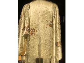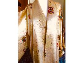 ONE of a KIND - beautiful traditional Japanese silk brocade kimono woven with classic iconic motifs in a pale green-yellow hue.