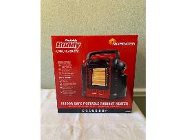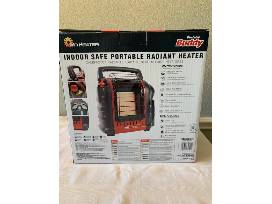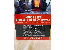 Indoor Safe Portable Radiant Heater. Features low & high setting, 4,000/9,000 BTU, heats up to 225sq. ft., Runs 5.4 hours on low and 2.4 hours on high on a 1lb. propane cylinder. Safety features include low-oxygen shut-off and tip-over shut-off.