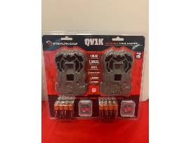 (2) Stealth Cam QV1K Infrared trail cams: batteries and (2) 16G sd cards included. (1) Stealth Cam SD Card reader/viewer.
