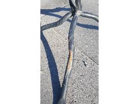 0Lovely Symmetric wrought iron tree-5 feet tall. Can be displayed as is or hung with decorations. Branches insert easily into slots on the main trusted trunk. Easy to transport. There is a bit of rust on the base that can easily be removed and painted over. See photo. 64" tall. 40" wide. Width: 40 in. Height: 64 in.