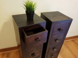 that we used as skinny night stands. Would work well as side tables or hallway storage. The chair pictured is for scale.