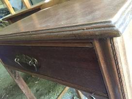 0Pretty mahogany Antique Bedside Table with carved trim and nice drawer pull. Old and a little musty!