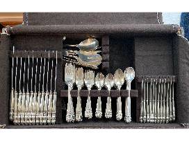 Royal Danish Sterling Silver, amazing 156 pieces including 12 place settings with 7 pieces in each setting, plus serving pieces of every size you can imagine. This may be the most beautiful donation the Gift/Collectible department has ever received.