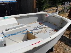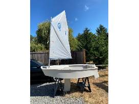 Condition: Used - Good Optimist/'Opti' sailboat complete with sails & running gear - ready to sail! Some dings and cosmetic chips etc., but solid little boat for learning to sail or race.