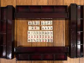 Mahjong Set consisting of 4 Rosewood Mahjong Trays and Tiles, carrying case