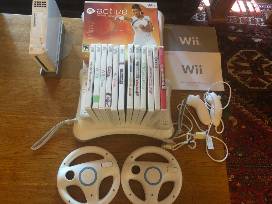 Wii with WiiFit board (and 3 WiiFit games), 4 controllers, 2 steering wheel controllers and 9 games (Mariokart, Carnival Games, Brunswick Bowling, Mario & Sonic at the Olympic Games, Madden09, GameParty2, FIFA15, SuperMarioBros).