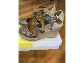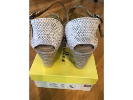 platform 3/4", wedge 3 3/4", sz 41 (10), criss-cross straps w buckle.