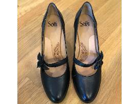 Sofft Black Leather Pumps w/Strap, Leather Flower sz 10MSpecifications: Sofft makes amazingly comfortable shoes. Cushioned footbed. 3" heels. Classy and comfortable!