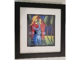 0Whimsical Dog and Cat Prints - Set of 2 Framed and Matted