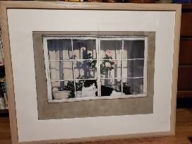 The cat gazing out the window is exquisitely drawn and has a wonderful presence on the wall. Judy's oil paintings are sold through the Portland Art Museum and are priced at $1400 for similar sized works. One of her pastels sold for $1200 several years ago.