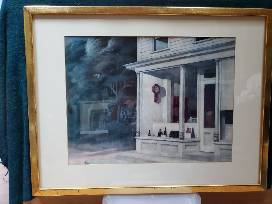 Large framed fine print by Edward Hopper. Dovetailed oak frame and mat.