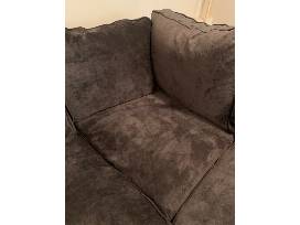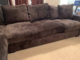 Large, comfortable, barely used sectional couch. Purchased from Arnold's Furnishings in 2014. Ultra comfort on a large scale, with Feather Blend seat cushions for ultimate seating enjoyment. This classy transitional style features roll arm styling and loose back and seat cushions for added fabric life. It's covered in a beautiful textured fabric that's super sofa to the touch. We do have cats but they did not spend much time on it. It is clean and free of cat hair. No stains, no tears. Dark plum, almost black colored. Length: 133 in. Width: 48 in. Height: 96 in.